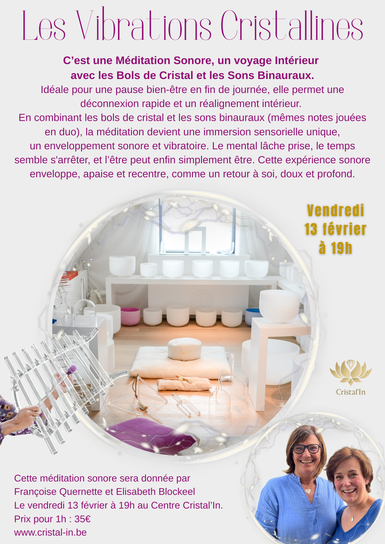 Méditation Sonore avec les Bols de Cristal et les Sons Binauraux ! A 19h avec Françoise Quernette et Elisabeth Blockeel
